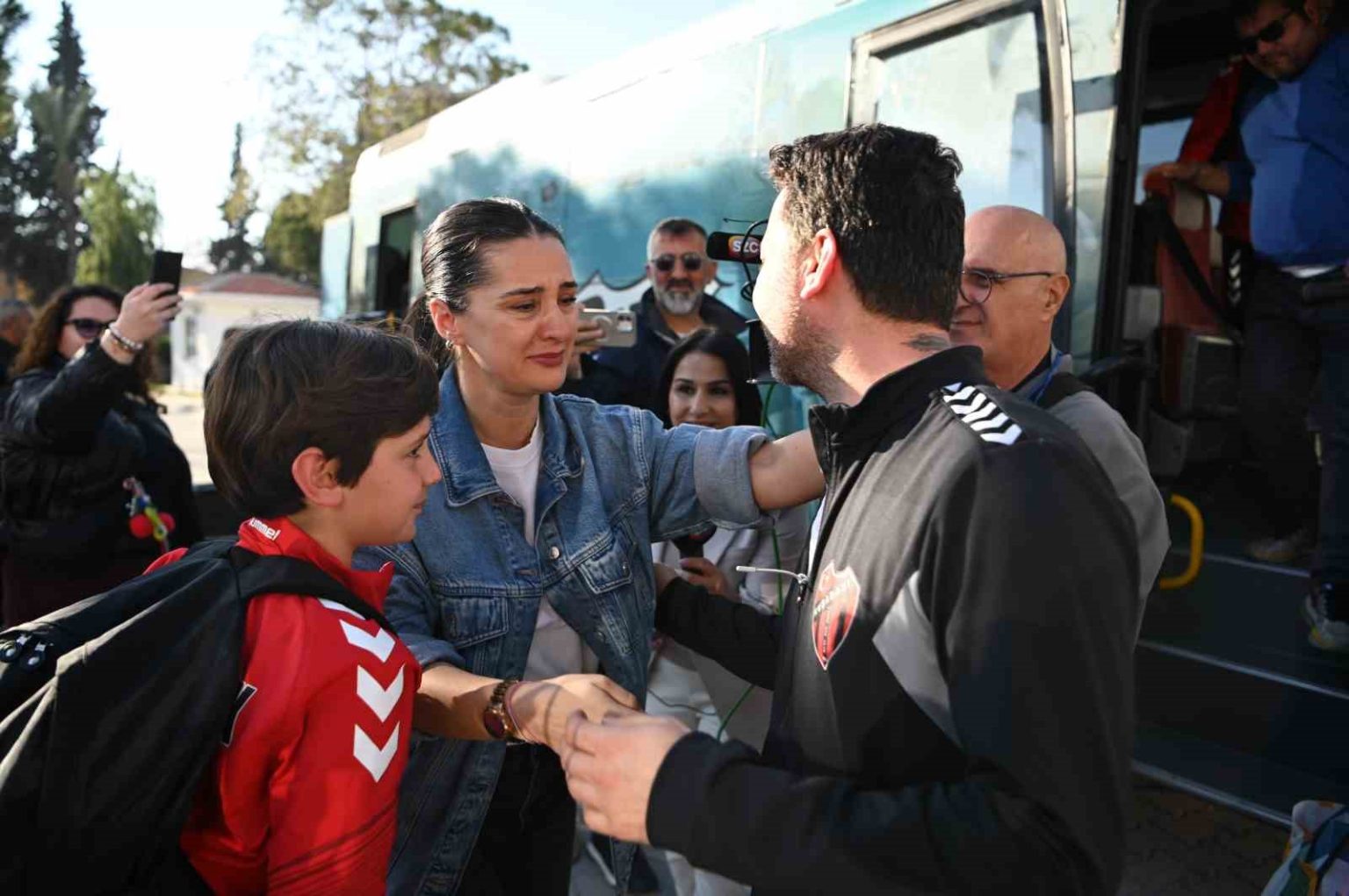Aydın’ın Kuşadası ilçesinden futbol turnuvası için Katar’a giden, ABD ve İsrail’in İran’a saldırması sebebiyle bölgede 12 gündür mahsur kalan 31 kişilik sporcu kafilesi bugün Türkiye’ye döndü. Sporcular aileleri tarafından karşılandı.
