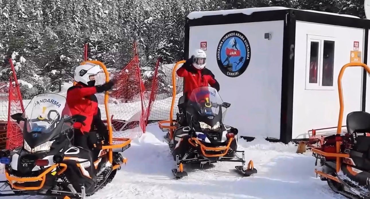 Kayak sezonunun başladığı Ilgaz Dağı’ndaki kayak merkezlerinde gece gündüz demeden nöbet tutan Jandarma Arama Kurtarma (JAK) timleri, kış sezonu boyunca yerli ve yabancı turistlere hizmet ederek, huzur ve güven veriyor. Yaralama, kaybolma ve mahsur kalma gibi olaylara karşı kar motorları ve dron desteğiyle daima teyakkuzda olan jandarma ekipleri, kayak merkezinde tatbikat ve eğitimlerine aksatmadan devam ediyor.