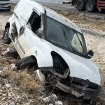 Afyonkarahisar’da yol kenarındaki kayalıklara çarparak devrilen hafif ticari araçta 2 kişi yaralandı.