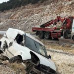 Kayalıklara çarpıp devrilen araçta 2 kişi yaralandı
