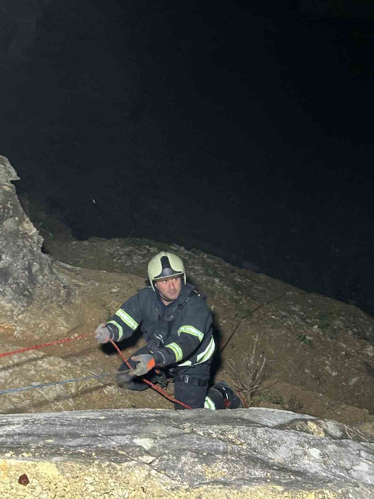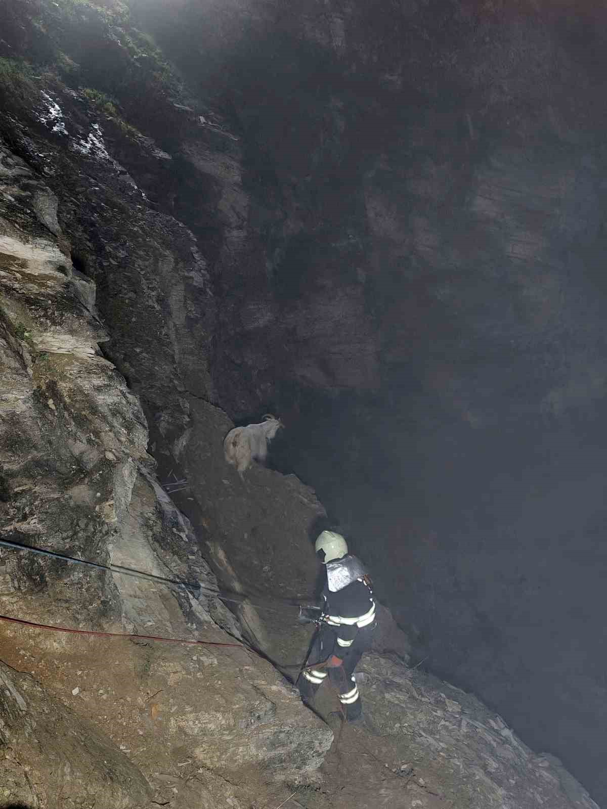 Bölgeye hızla ulaşan itfaiye ekipleri, yağışlı hava ve ıslak zemin nedeniyle kayganlaşan tehlikeli arazide adeta cansiparane kurtarma çalışması başlattı. Metrelerce yükseklikteki kayalıklara özel halat sistemleri kurarak inen itfaiye erleri, zorlu hava ve fiziki şartlara rağmen titiz bir operasyon yürüttü. Ekiplerin zorlu arazi şartlarıyla mücadelesi yaklaşık 3 saat sürdü. Başarıyla tamamlanan operasyon sonucunda, kayalıklarda mahsur kalan 16 keçi ve oğlak burunları dahi kanamadan kurtarılarak sahibine sağ salim teslim edildi.