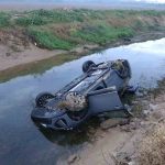 Kayganlaşan yolda kontrolden çıkan araç kanala uçtu