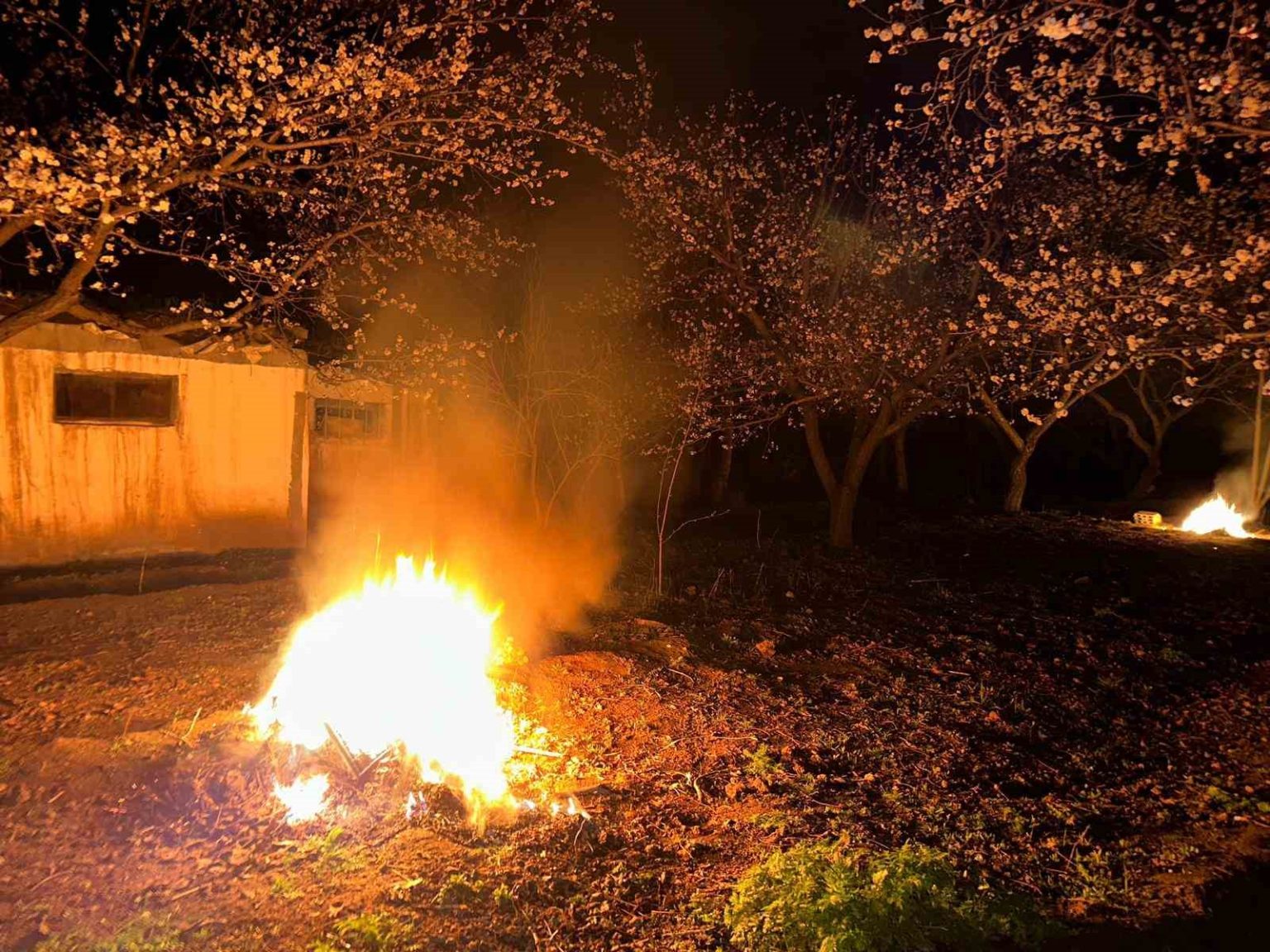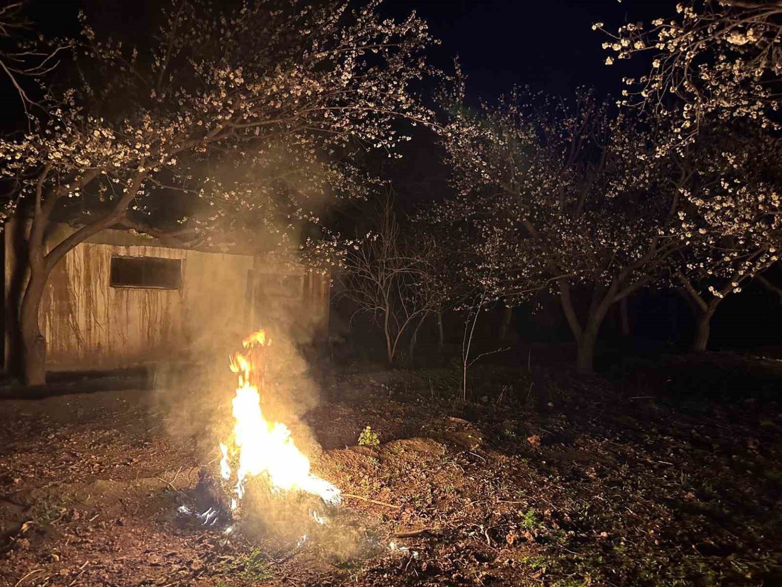 Kayısı bahçelerini ateş ve dumanla donmaya karşı koruyorlar
