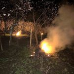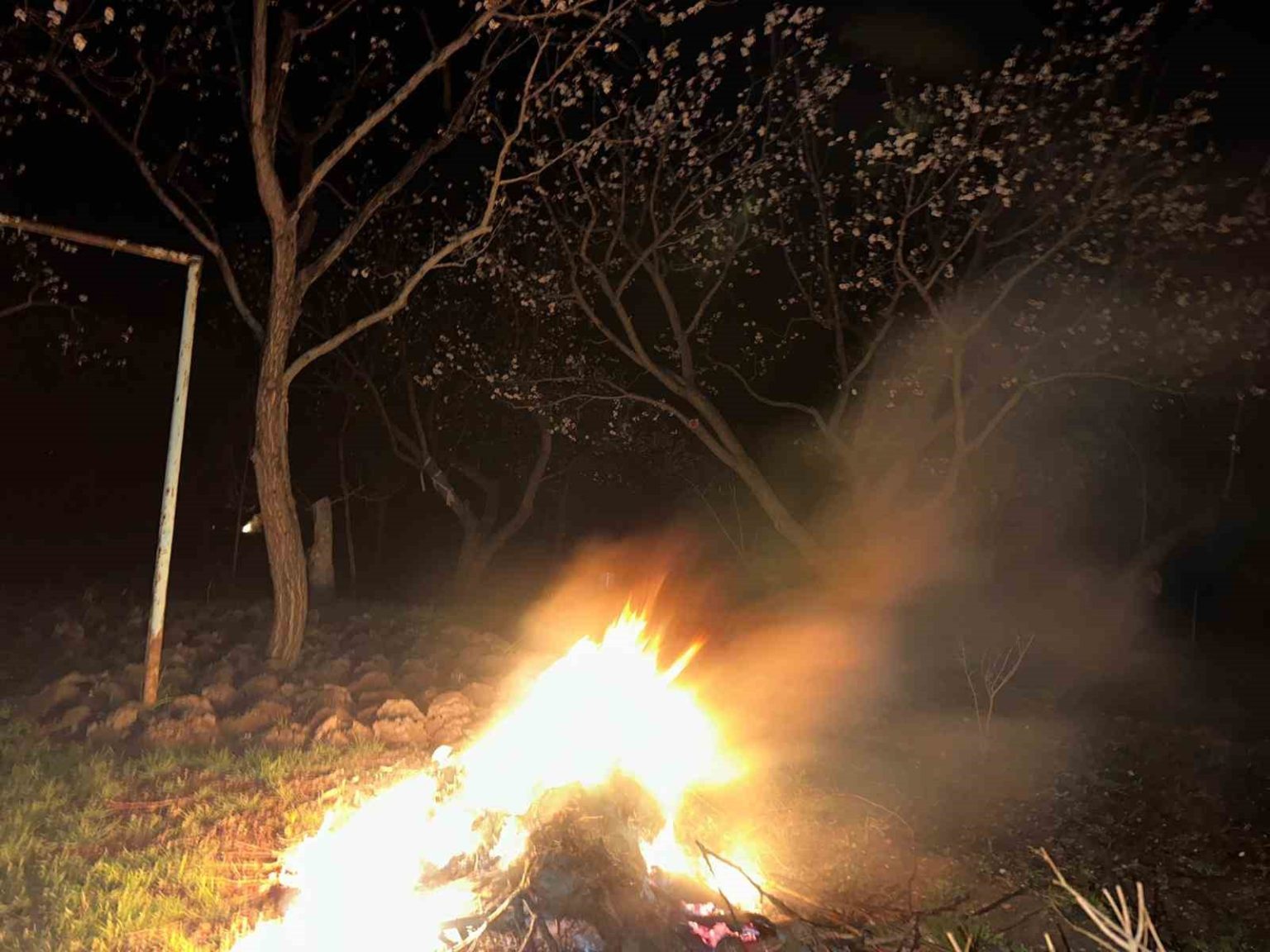 Kağızman’da hava sıcaklıklarının eksilere düşmesiyle açan kayısı Çiçeklerini donma tehlikesine karşı eski bir yöntem olan duman ve ateşle koruyorlar.