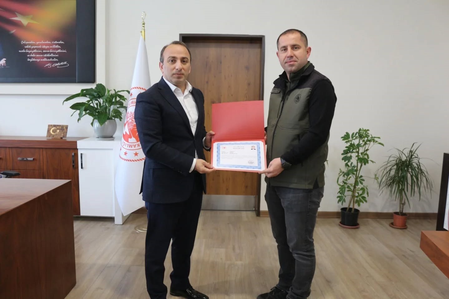 Başarı belgesi alan Orman Şefi Gökhan Önal ve personel de desteklerinden dolayı Kaymakam Erdoğan’a teşekkür etti.
