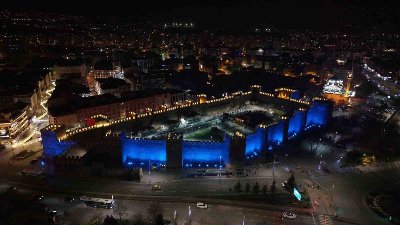 Kayseri Büyükşehir, tarihi surları mavi ışıkla aydınlatarak otizm farkındalığına dikkat çekti