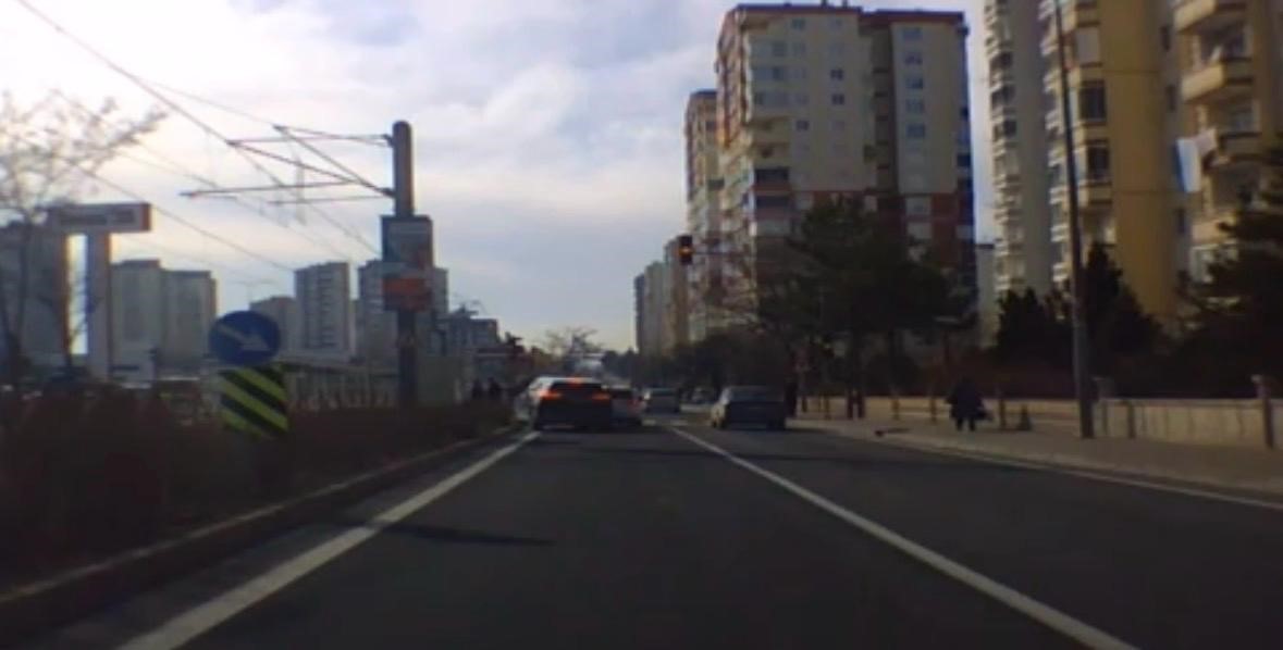 Ayrıca, aracın bir otomobilin arkasından ilerlediği ve birden refüje çıktığı kazanın görüntüleri de bir aracın yol kamerasına yansıdı.