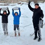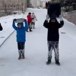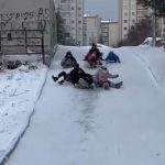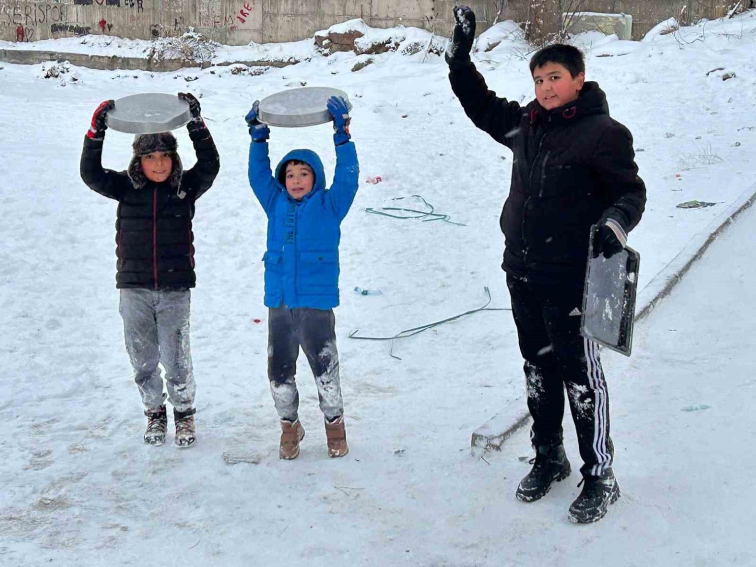 Kayseri’de çocukların kar eğlencesi: Tepsilerle kayak yaptılar