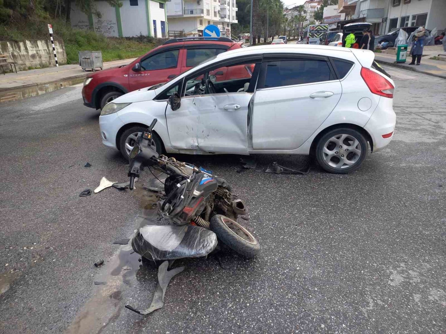 Kaza, Manavgat ilçesi Çağlayan Mahallesi Hastane Caddesi’nde meydana geldi. Edinilen bilgiye göre, Hafız Hoca Mezarlığı istikametine seyir halindeki Mert Y.’nin kullandığı 07 BHH 193 plakalı motosiklet, 7518. Sokak kesişimine geldiğinde Hastane Caddesi’ne çıkan Züleyha Y.’nin kullandığı 07 AED 073 plakalı otomobille çarpıştı. Kazada yaralanan motosiklet sürücüsü Mert Y., sağlık ekibinin olay yerindeki müdahalesinin ardından ambulansla hastaneye kaldırıldı. Kazanın ardından Manavgat Emniyet Müdürlüğü Trafik Denetleme Büro Amirliği ekipleri tarafından yapılan kontrolde motosikletin plakasının takılı olmadığı, sürücünün de sürücü belgesinin olmadığı belirlendi. Motosiklet sürücüsüne tescilli aracı plakasız kullanmaktan 19 bin 716 TL, sürücü belgesiz araç kullanmaktan 23 bin 437 TL, motorlu bisiklet sahibine de sürücü belgesi olmayan kişiye araç kullandırmaktan 23 bin 437 TL olmak üzere toplam 66 bin 590 TL para cezası uygulanırken, motosiklet trafikten men edilerek yediemin otoparkına çekildi.
