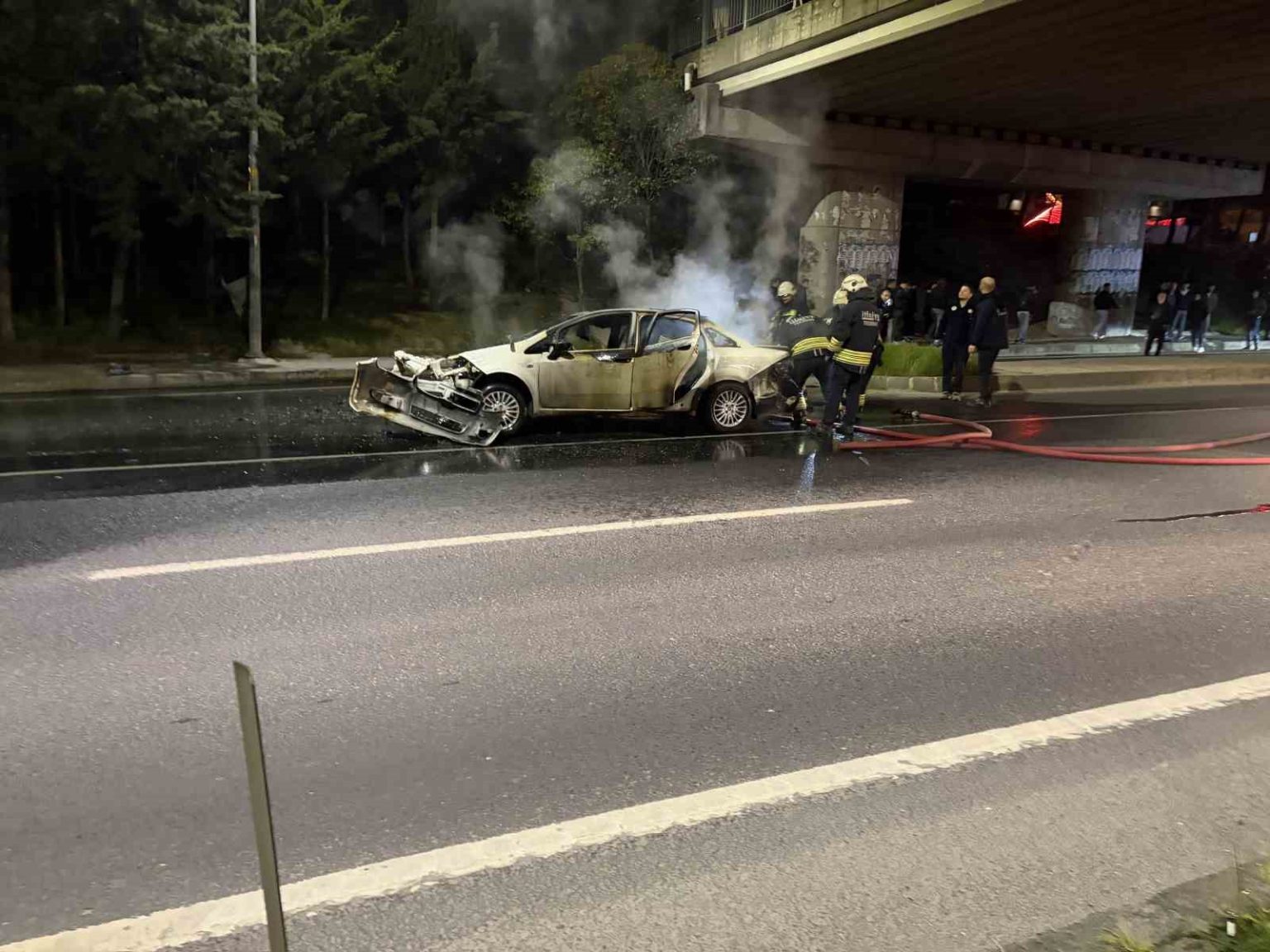 Kaza yapan otomobil alev topuna döndü: Yol trafiğe kapandı