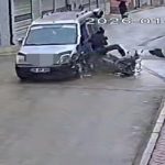 Eskişehir’de iki sokak kesişimde motosikletin panelvan araca yandan çarpma anı anbean güvenlik kamerasına yansırken kurye ağır yaralandı.
