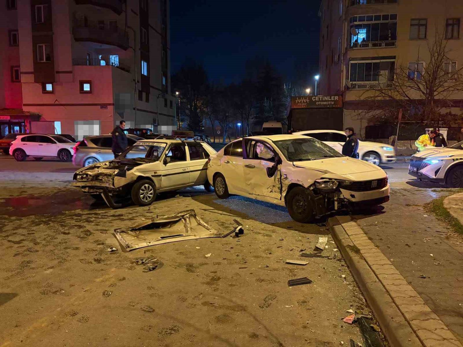 Edinilen bilgiye göre, Keykubat Mahallesi Güllübahçe Caddesi’nde meydana gelen trafik kazasında, S.G. yönetimindeki 34 NFP 218 plakalı Fiat marka otomobil ile İ.Y. yönetimindeki 38 AKS 565 plakalı otomobil çarpıştı. Çarpışmanın etkisiyle savrulan 34 NFP 218 plakalı otomobil kaldırımda bulunan E.G.Y. ve S.G.’ye çarptı. Kazada 38 AKS 565 plakalı otomobilin sürücüsü İ.Y. ve diğer otomobilde bulunan 1 yolcu ile 2 yaya yaralanırken, ihbar üzerine bölgeye polis ve sağlık ekipleri sevk edildi. Polis ekipleri çevrede güvenlik önlemi alırken, sağlık ekipleri de yaptıkları ilk müdahalenin ardından 4 yaralıyı ambulansla hastanelere kaldırdı. Çalışmaların ardından otomobiller çekiciyle kaldırılırken, kazayla ilgili inceleme başlatıldı.