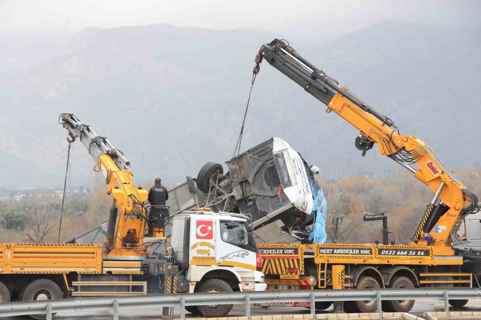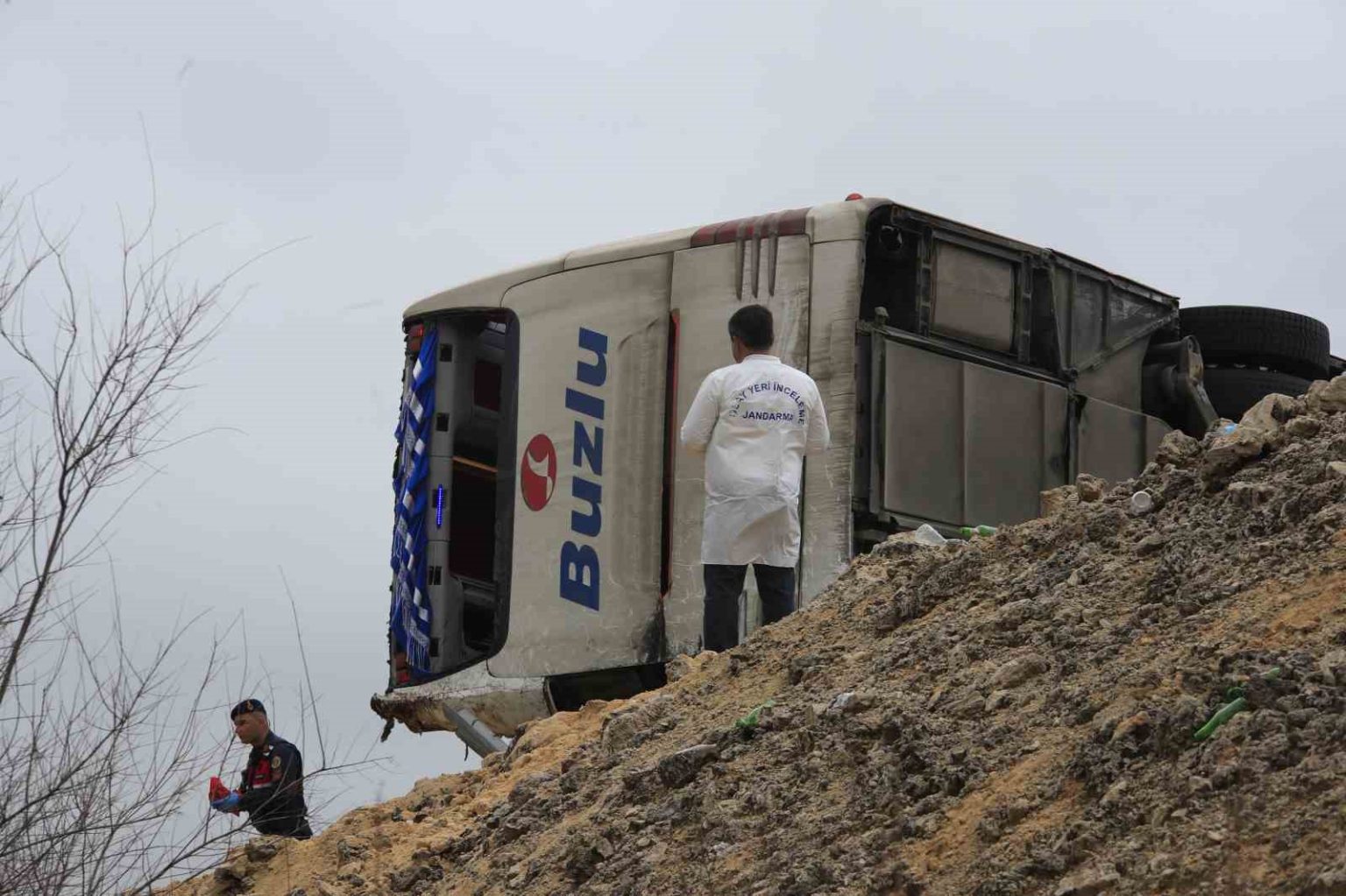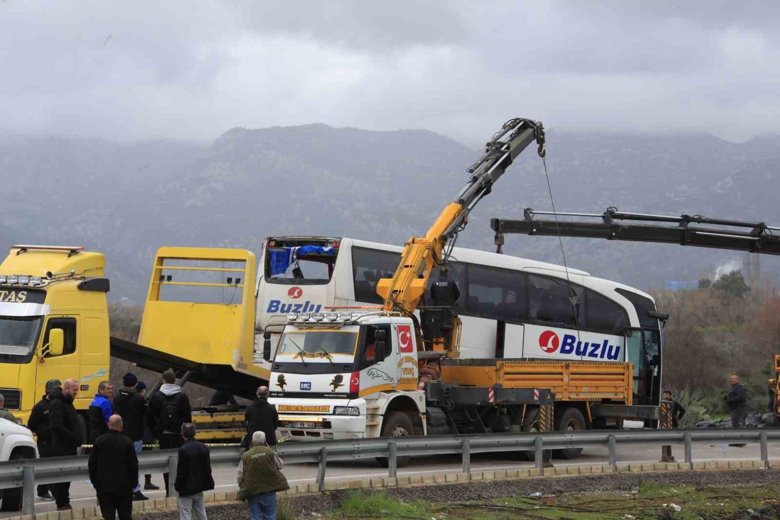 Öte yandan, kaza yapan otobüs yaralıların hastaneye sevk edilmesi ve olay yeri inceleme ekibinin çalışmasının ardından vinçler yardımıyla çekiciye yüklenerek olay yerinden kaldırıldı. Otobüsün kaldırılmasının ardından jandarma ekipleri otobüsün altında kalan başka cesetler olma ihtimaline karşı arama yaptı.