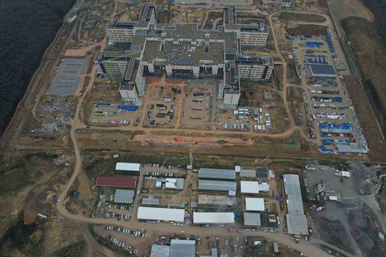 Sakarya’nın Adapazarı ilçesinde inşaatı devam eden bin yataklı şehir hastanesinde işçi yatakhanelerinin bulunduğu bölümde çıkan ve kentin dört bir bölgesinden görülen yangın, kontrol altına alınarak söndürüldü.