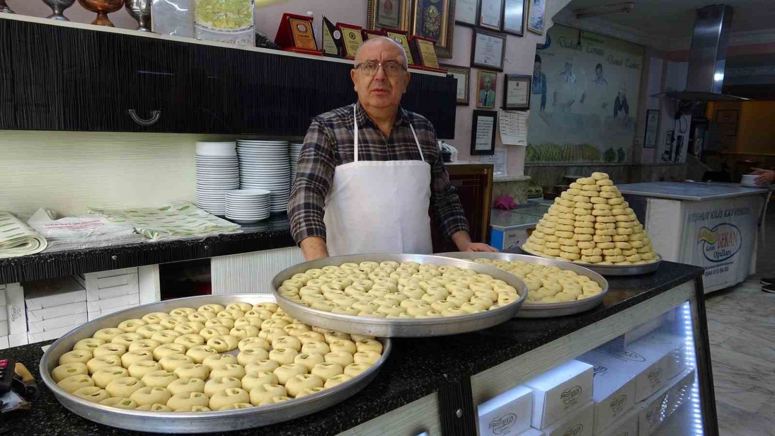 Kilis’e özgü lezzetlerden biri olan Kilis kurabiyesi, kandil geceleri ve özel günlerde kentte yıllardır yaşatılan gelenekler arasında yer alıyor. Kandil simidi yerine kurabiye ikram edilen Kilis’te, bu özel lezzet misafirlere dağıtılıyor. Üçüncü kuşak tatlıcı olduğunu belirten Uğur Bekan, Kilis kurabiyesinin özellikle kandillerde ve özel günlerde yoğun talep gördüğünü söyledi. Bekan, “Kilis’te kandil simidi yerine kurabiye ikram edilir. Vatandaşlarımız kurabiyeyi alır, komşularına ve misafirlerine dağıtır. Biz 12 ay boyunca Kilis kurabiyesi üretimi yapıyoruz” dedi.