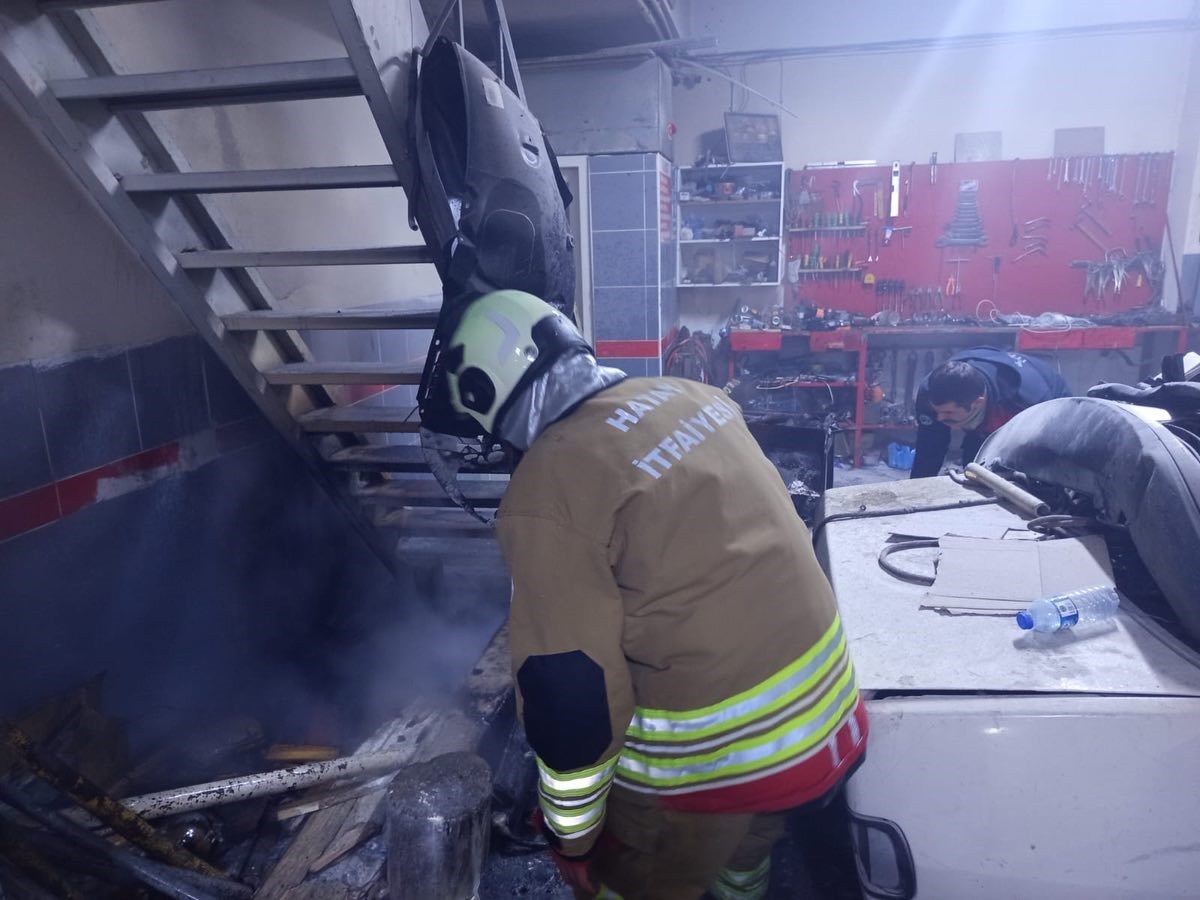 Hatay’da araç tamirhanesinde çıkan yangını itfaiye ekipleri büyümeden söndürdü.