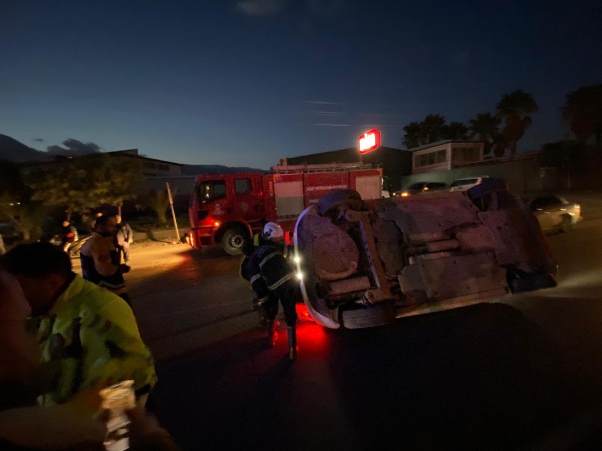 Hatay’da takla atarak yan yatan otomobilin sürücüsü yaralandı.