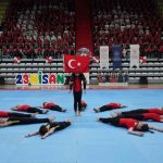 Kırıkkale’de 23 Nisan Ulusal Egemenlik ve Çocuk Bayramı, çeşitli etkinliklerle coşkuyla kutlandı. Yeni Merkez Kapalı Spor Salonu’nda düzenlenen program, saygı duruşu ve İstiklal Marşı’nın okunmasıyla başladı. İl Milli Eğitim Müdürü Rahmi Güney, günün anlam ve önemini belirten bir konuşma yaptı. Etkinlik kapsamında öğrenciler çeşitli gösteriler sundu. Programda, ront gösterisi, jimnastik gösterisi, halk oyunları, müzikli oyun, ritim grubu gösterisi ve karma gösteri yer aldı.
