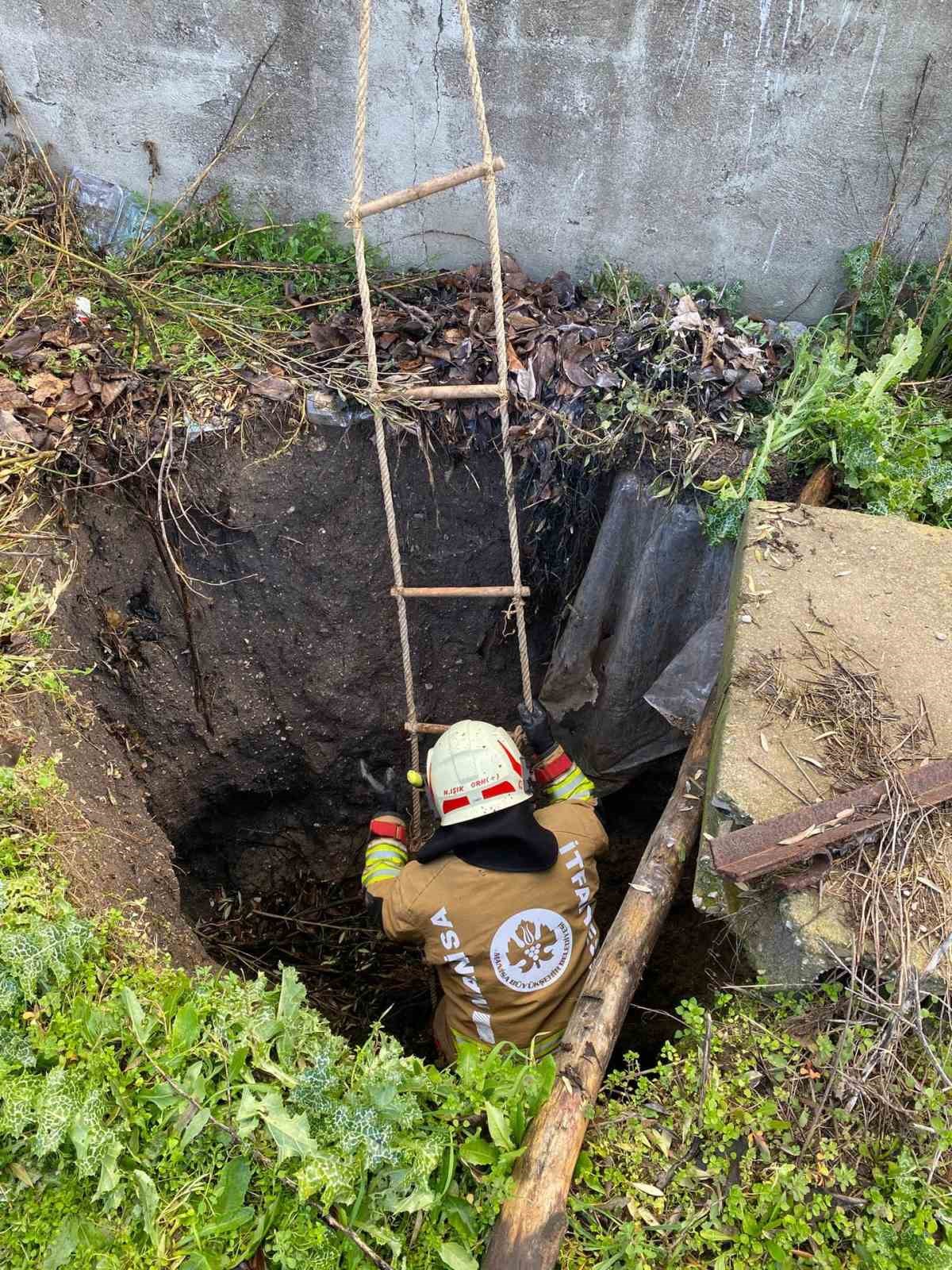 Olay, Kırkağaç ilçesi Şair Eşref Mahallesi 154 Sokak’ta meydana geldi. Edinilen bilgiye göre, bir köpeğin yaklaşık 5 metre derinliğindeki su kuyusuna düştüğünü fark eden vatandaşlar, durumu itfaiye ekiplerine bildirdi. İhbar üzerine bölgeye Manisa Büyükşehir Belediyesi İtfaiyesi Kırkağaç Amirliği ekipleri sevk edildi. Kısa sürede olay yerine ulaşan ekipler, merdiven yardımıyla kuyuya inerek mahsur kalan hayvanı bulunduğu yerden güvenli bir şekilde çıkardı.