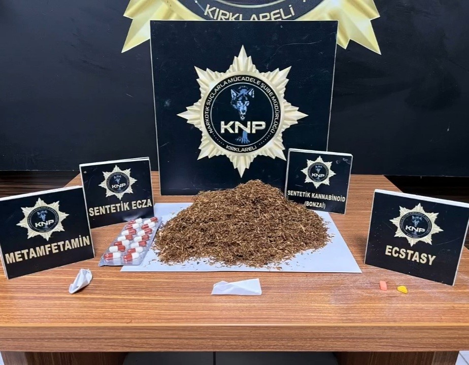 Kırklareli Cumhuriyet Başsavcılığı koordinesinde, Kırklareli İl Emniyet Müdürlüğü Narkotik Suçlarla Mücadele Şube Müdürlüğü ekiplerince uyuşturucu madde ticareti yaptığı tespit edilen şüphelilere yönelik il merkezi ve Lüleburgaz ilçesinde eş zamanlı operasyon gerçekleştirildi. Şüphelilerin ikametlerinde ve araçlarında yapılan aramalarda 336,69 gram sentetik kannabinoid, 2,59 gram metamfetamin, 425 gram sıvı sentetik kannabinoid, 44 adet sentetik ecza, bir adet hassas terazi, iki adet ecstasy ve suçtan elde edildiği değerlendirilen 26 bin 260 TL ele geçirildi.