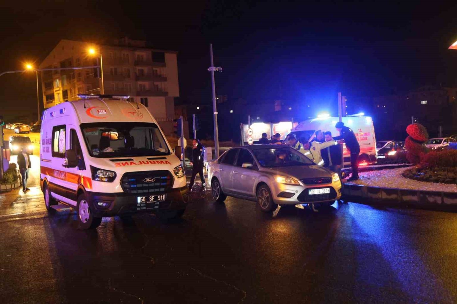 Nevşehir’de kırmızı ışıkta geçen motosikletin otomobile çarptığı kazada 3 kişi yaralandı.