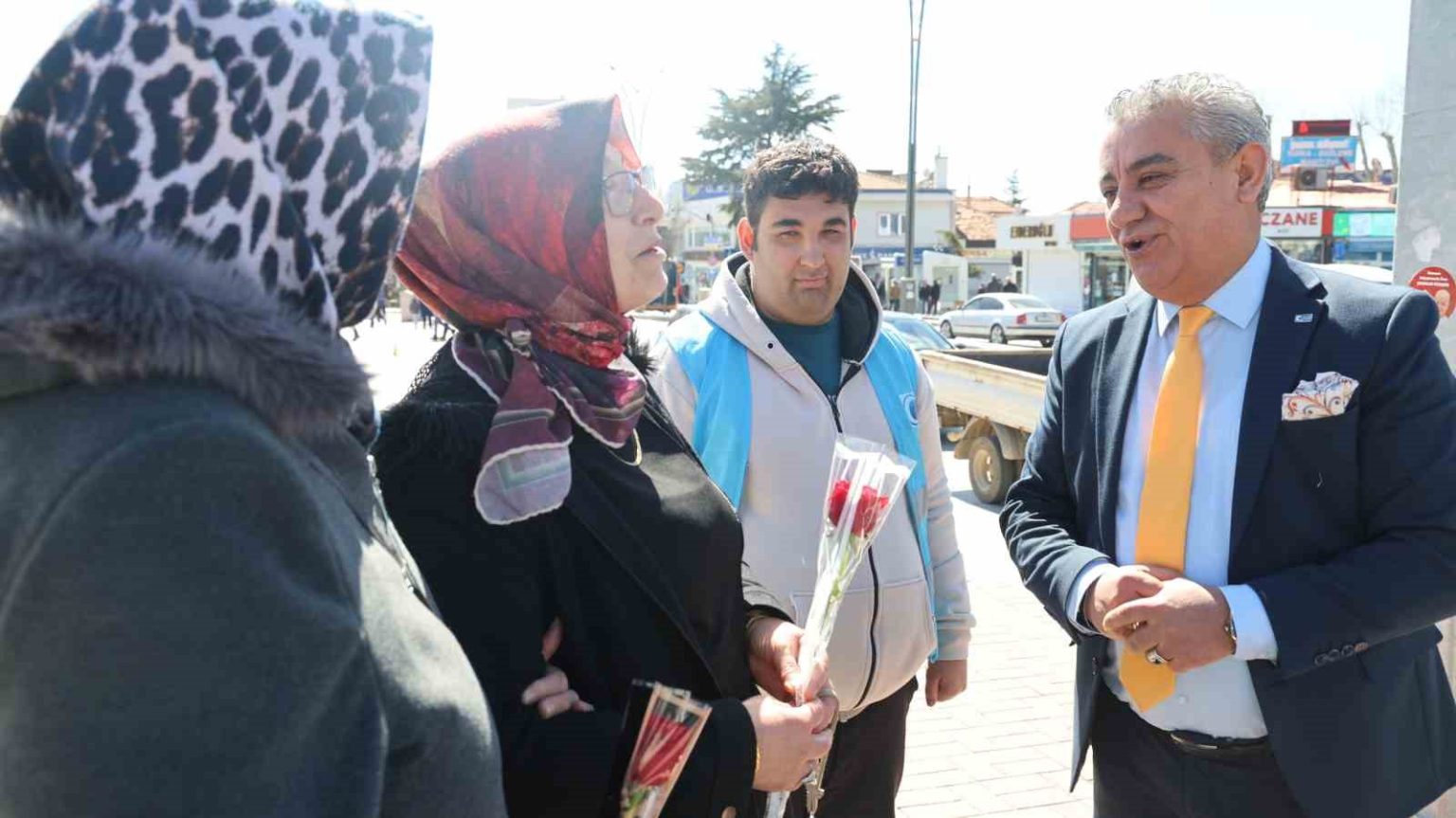 Kırşehir’de özel bireylerden kadınlara gül ve karanfil