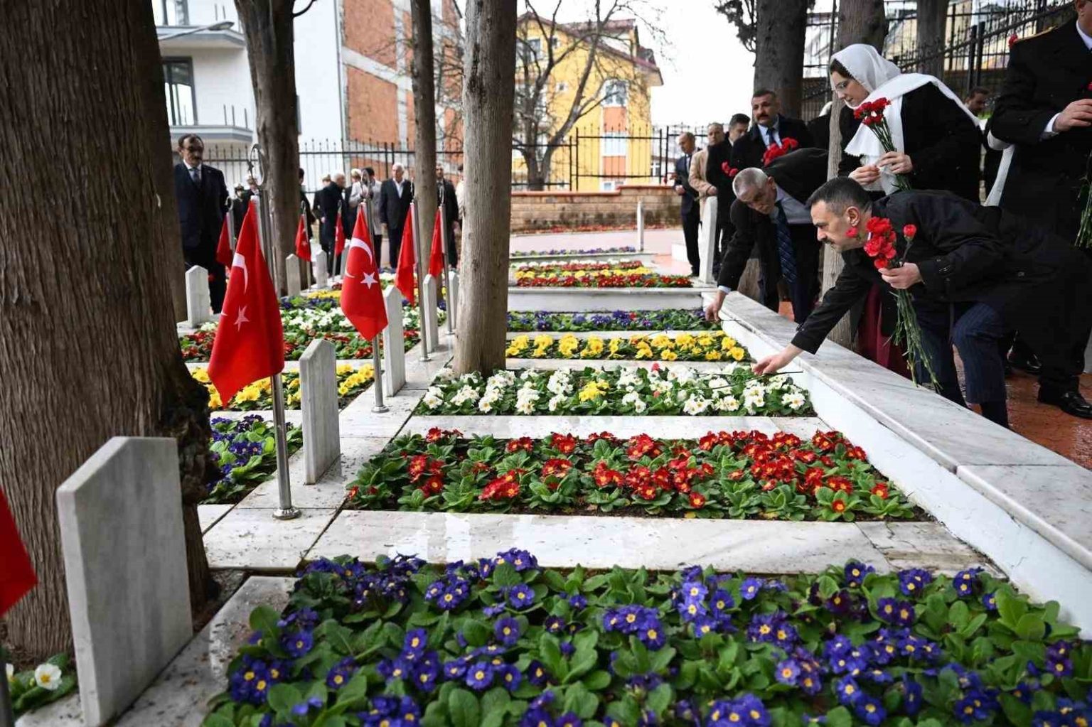 Bağçeşme Namazgah Şehitliği’nde gerçekleştirilen ilk ziyarette tüm şehitler ve merhum gaziler için Kur’an-ı Kerim okundu. Ardından Vali İlhami Aktaş ve beraberindeki protokol üyeleri, edilen dualar eşliğinde şehit kabirlerine çiçek bıraktı. Şehit yakınlarıyla yakından ilgilenen Vali Aktaş, ailelerle sohbet ederek sabır dileklerini iletti. Namazgâh Şehitliği ziyaretinin ardından heyet, Polis Şehitliği’ne geçti. Burada da Kur’an-ı Kerim okunarak dualar edilirken, şehit kabirlerine karanfiller bırakıldı.