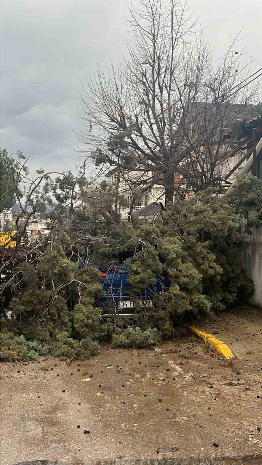 Kocaeli’nin Körfez ilçesinde etkili olan fırtına nedeniyle çok sayıda evin çatısı uçtu, elektrik ve iletişim hatları koptu. Kopan tellerin neden olduğu yangında bir ev tamamen kullanılamaz hale geldi. Dilovası’nda da bir vatandaş fırtınada tenteyle birlikte savruldu.