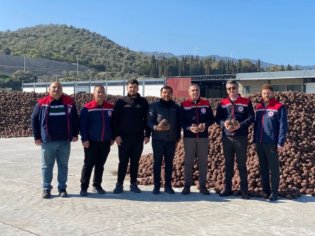 Aydın İl Tarım ve Orman Müdürü Ayhan Temiz ile Koçarlı İlçe Müdürü İbrahim Selli, Koçarlı ilçesinde faaliyet gösteren çam fıstığı işleme tesisini ziyaret ederek çalışmaları hakkında bilgi aldı.