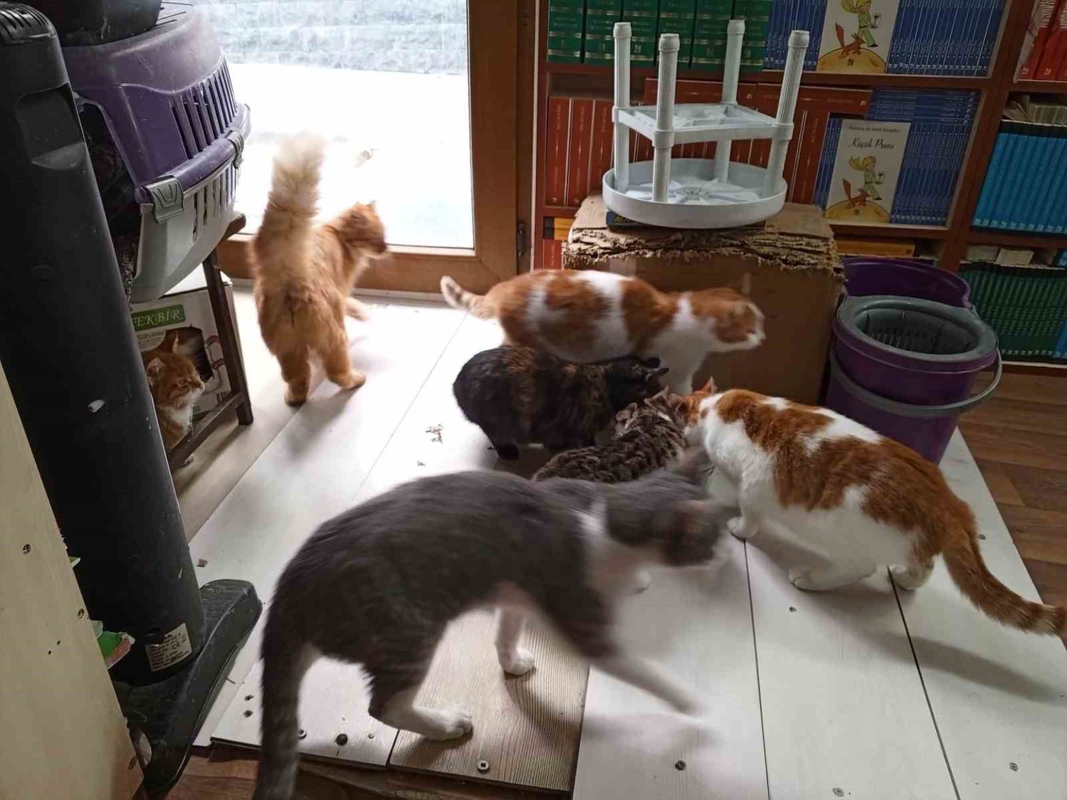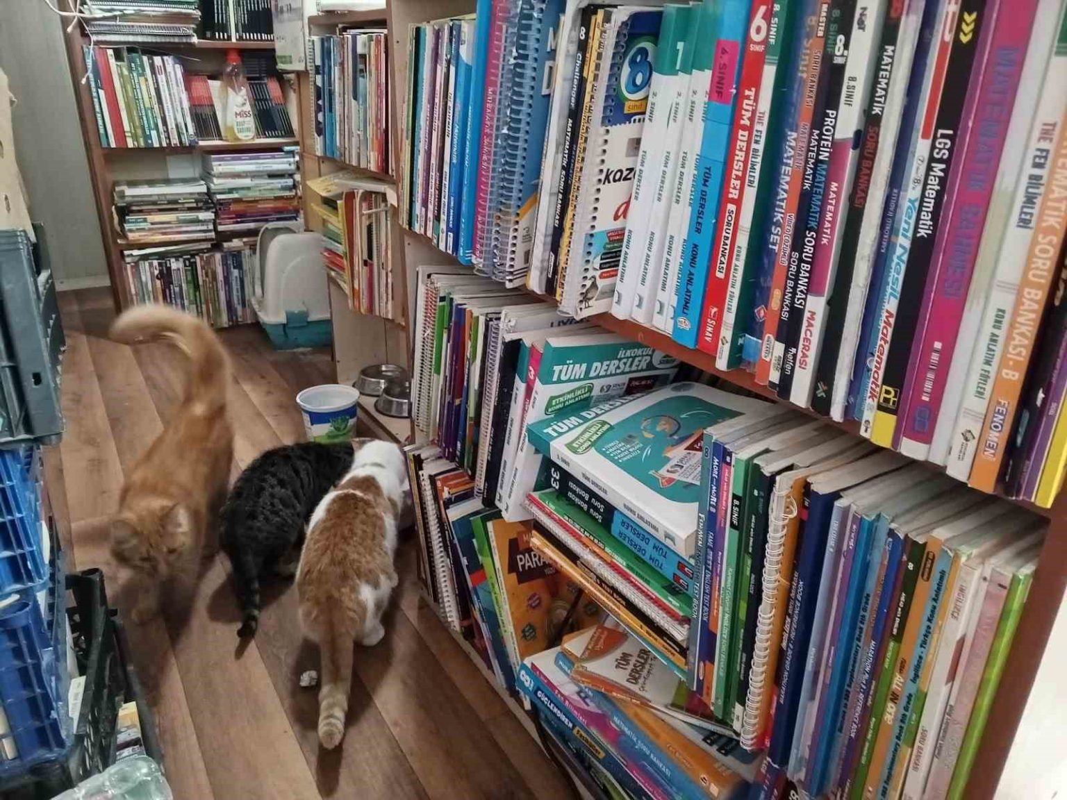 Konteynerde hayata tutunan sahaf, sokak kedilerini yalnız bırakmadı