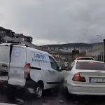 Kontrolden çıkan araç, önündeki 4 araca çarptı: O anlar kamerada