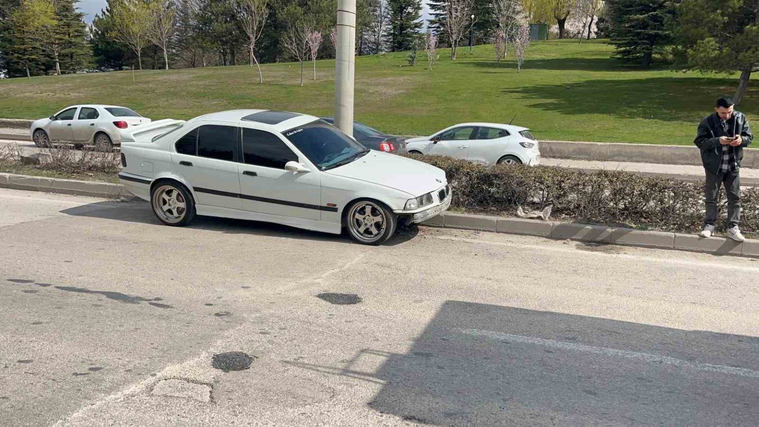 Eskişehir’de meydana gelen kazada kontrolden çıkan araç cadde üzerinde bulunan orta refüje çıkarak dururuken, yaralanan sürücü hastaneye kaldırıldı.