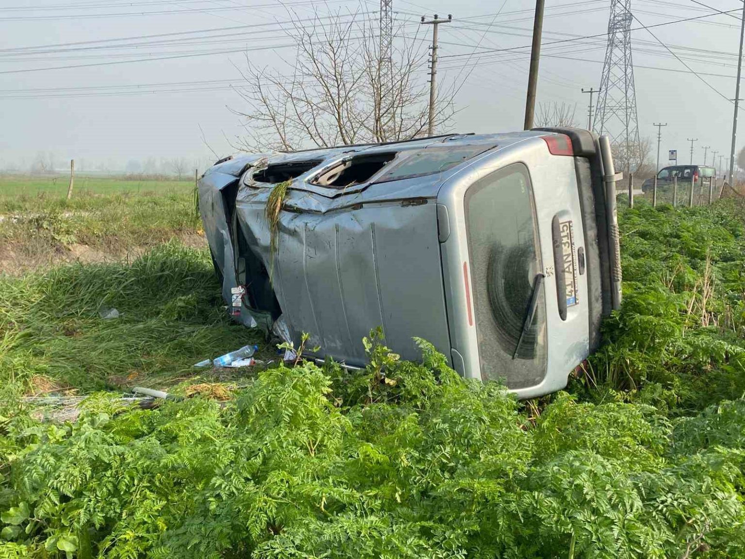 Kontrolden çıkan hafif ticari araç takla attı, sürücü yaralandı