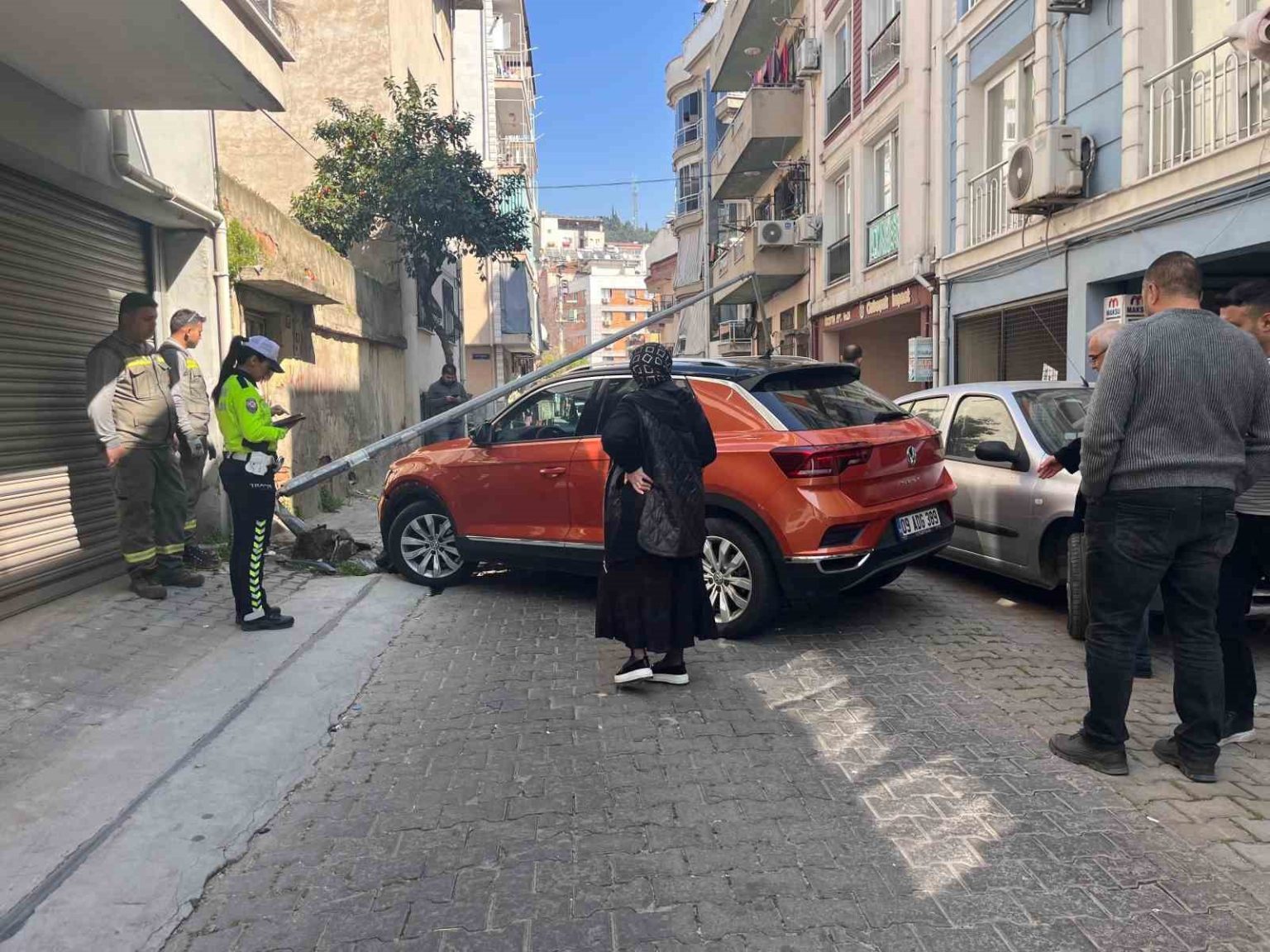 Aydın’ın Efeler ilçesinde park etmek isterken fren yerine gaza basan sürücü sokakta bulunan aydınlatma direğini çarparak devirdi. Sürücü kazadan yara almadan kurtulurken, 3 otomobil zarar gördü.