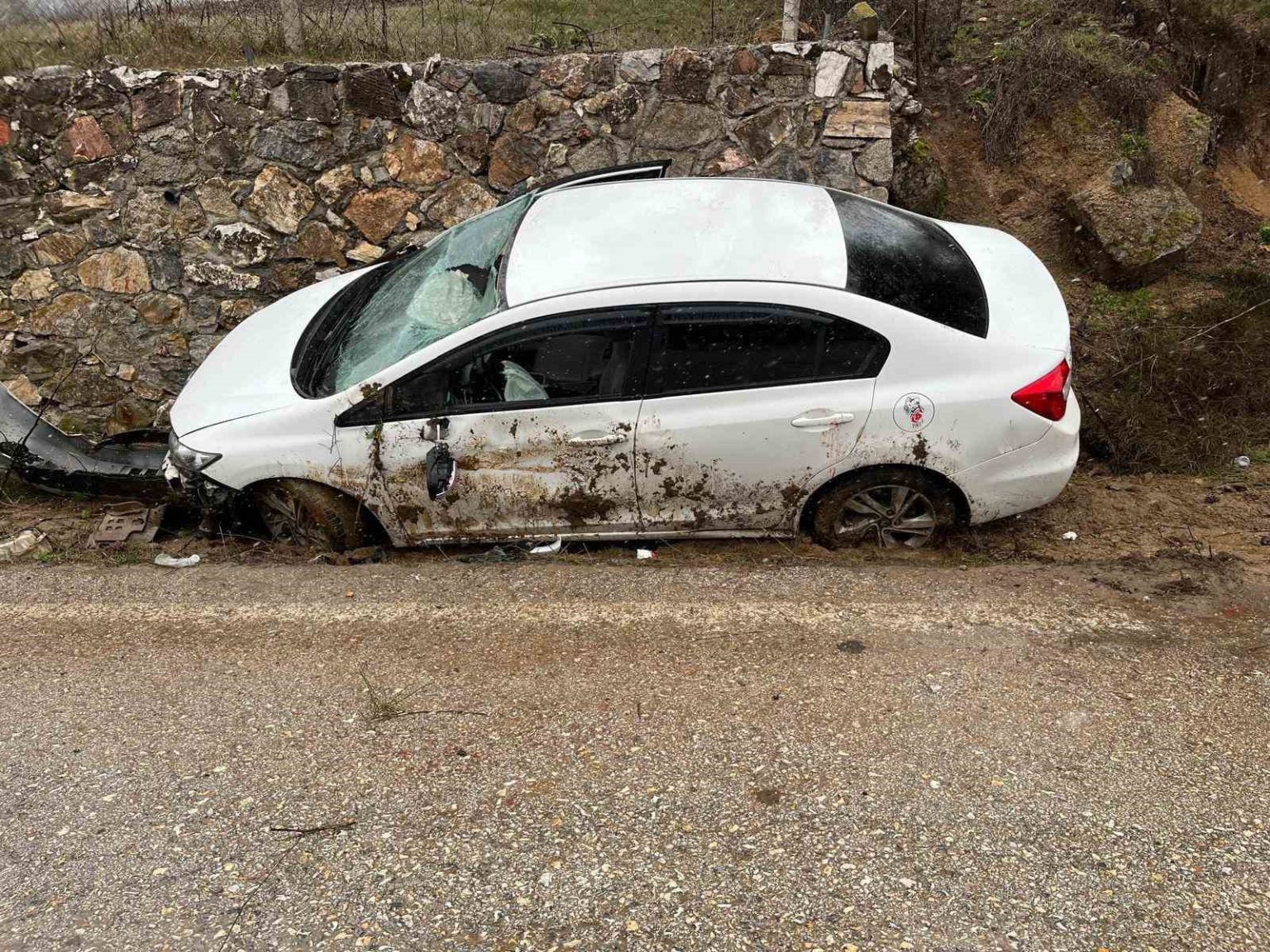 Bursa’nın İnegöl ilçesinde kontrolden çıkan otomobilin istinat duvarına çarptığı kazada 4 kişi yaralandı.
