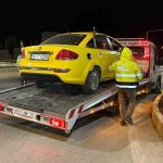 Kontrolden çıkan ticari taksi orta refüje devrildi
