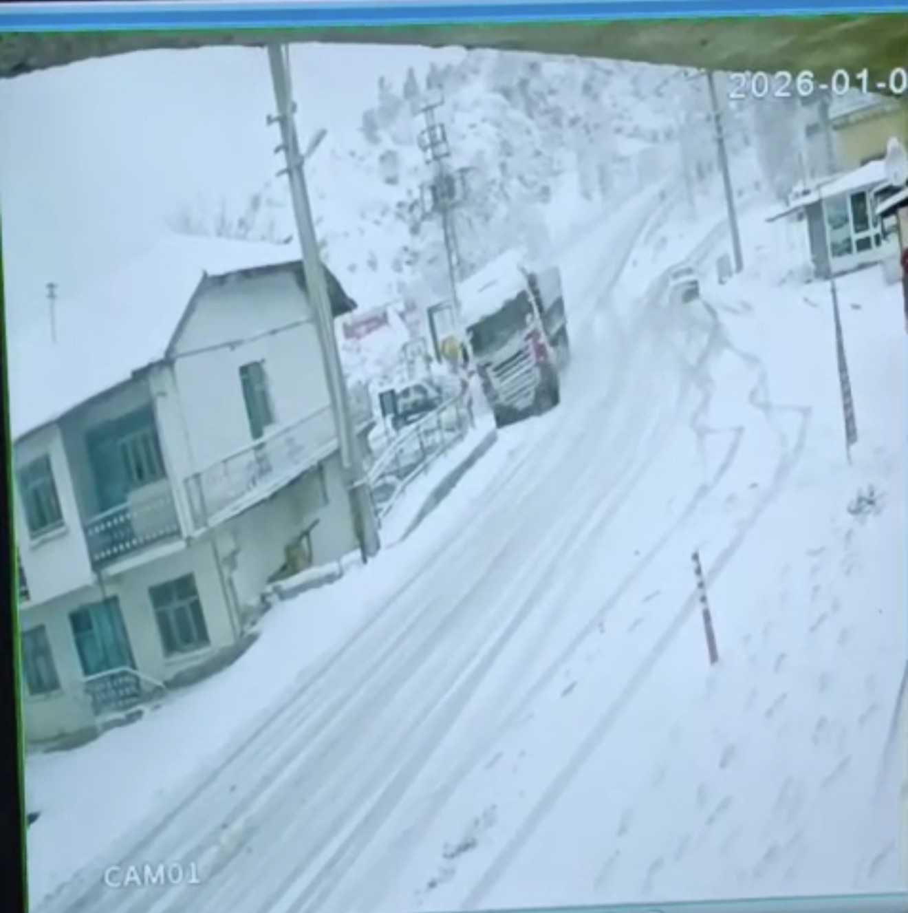 Öte yandan tırın eve çarpma anı, güvenlik kamerası tarafından görüntülendi. Görüntülerde tırın hızla gelerek evin duvarına çarptığı anlar yer aldı.