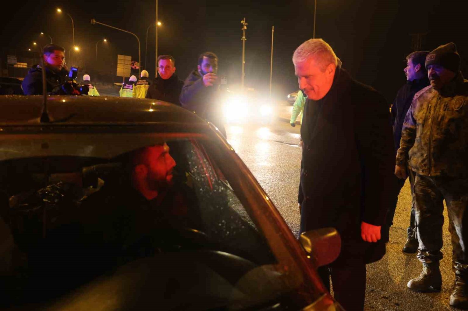 Konya’da 2025’in son dakikalarında kentin giriş ve çıkışında bulunan kontrol noktalarını ziyaret eden Vali İbrahim Akın, İl Emniyet Müdürü Maksut Yüksek ve beraberindeki protokol mensupları sürücülere çikolata ikram ederek yeni yıllarını kutladı.