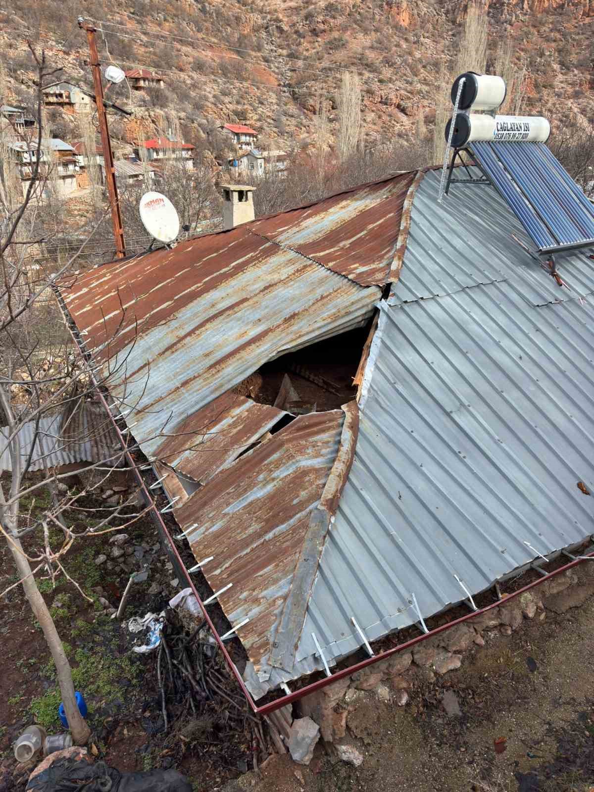 Olay, ilçeye bağlı Dereköy Mahallesi Kuzyaka Mevkiinde meydana geldi. Edinilen bilgiye göre, Hüseyin Ö.’ye ait, kış aylarında boş olan evin üzerine aniden büyük bir kaya parçası düştü. Dağdan kopan kaya, önce evin çinko çatısını yırtarak damın toprak zeminie saplandı. Olay anında evde kimse bulunmadığı öğrenilirken, evde maddi hasar oluştu.