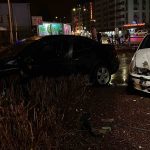 Konya’da iki otomobilin çarpışması sonucu araçlar savrularak önce trafik lambasını devirdi, daha sonra da reklam panosuna çarptı. Kazada 2 kişi yaralandı.