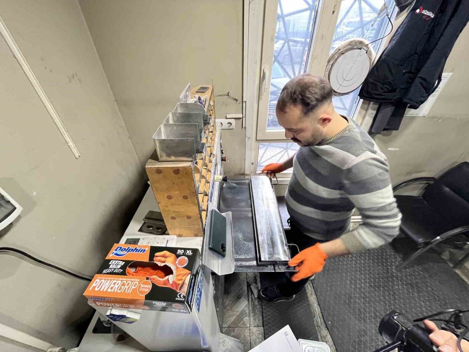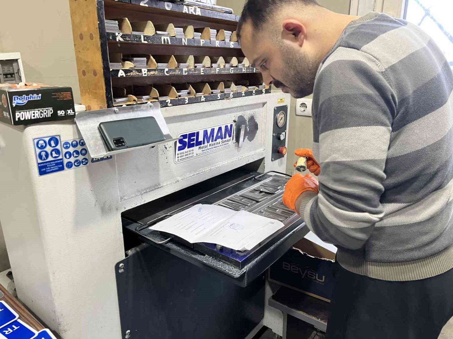 Plaka basım sürecinin işleyişini anlatan Oda Başkanı Ahmet Şen, “Vatandaşımız sırası gelince evrağını ve kimliğini veriyor. İşlem kayıtları yapıldıktan sonra ilk işlem bitmiş oluyor. Sonra basım atölyesine geçiyor. Basım atölyesinde arkadaşlarımız harflerini sıralayarak, üretim yaparak boyahaneye geçiyor. Boyahaneden işi bittikten sonra son işlem olarak mührü basılarak teslim ediyoruz” dedi.