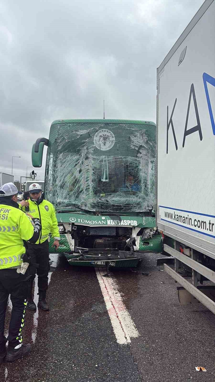 Sultanbeyli’de Konyaspor U-19 takımını taşıyan otobüs, TEM Otoyolu’nda seyir halinde bir kamyona arkadan çarptı. Kazada 3 kişi hafif yaralanırken, oto yolunun iki şeridi kısa süreliğine trafiğe kapatıldı.