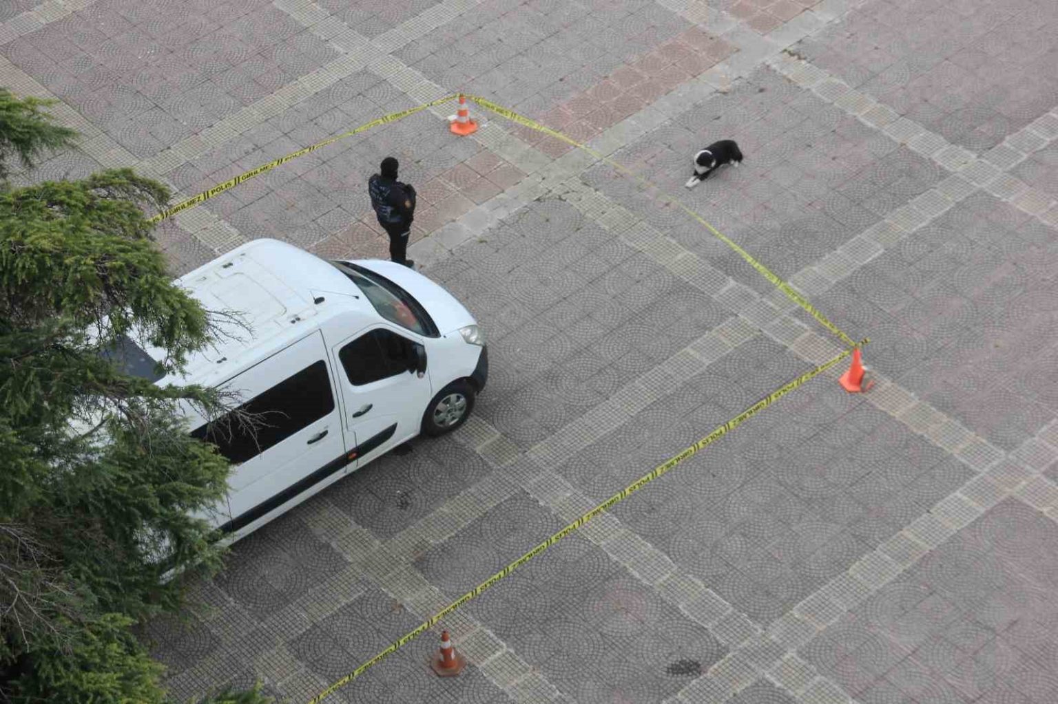 Cumhuriyet Meydanı’nda görev yapan polis ekiplerinin güvenlik amacıyla şerit çektiği alanda dikkat çeken bir görüntü ortaya çıktı. Polis aracının çevresinin şerit ve dubalarla kapatıldığı bölgede, meydanın müdavimi olduğu öğrenilen siyah-beyaz köpek, güvenlik şeridinin dışında kalarak yere uzandı. Güvenlik alanının hemen dışında yere uzanan köpek, adeta beklemeyi, saygı duymayı ve sınırları bilmeyi hatırlattı.