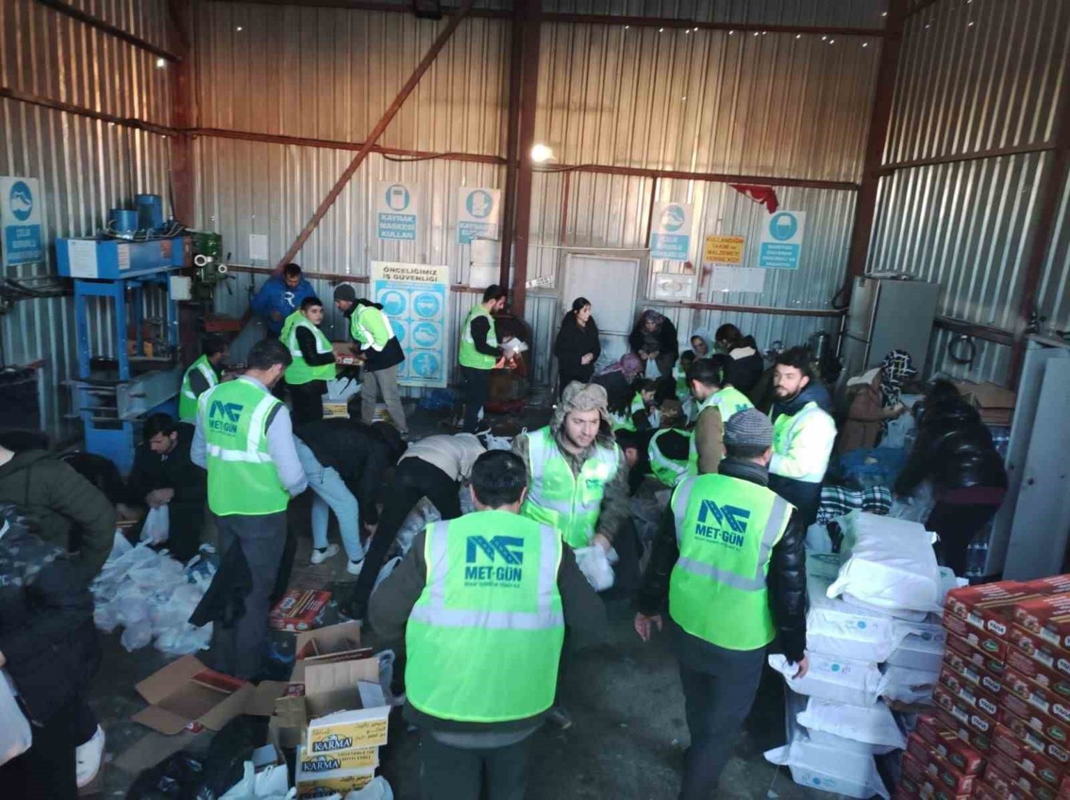 Körfezray Metro Projesi şantiyesi yemekhanesinde gerçekleştirilen programda Kahramanmaraş merkezli “asrın felaketi”nde yaşamını yitiren vatandaşlar için Kur’an-ı Kerim okunarak, dualar edildi. Met-Gün İnşaat tarafından yapılan açıklamada, depremzedeler için düzenlenen bağış gecesinde Afet ve Acil Durum Yönetimi Başkanlığı’na (AFAD) Met-Gün Grup adına 10 milyon TL, Metin Güneş ve Halis Ezer adına ise 5 milyon TL bağış yapıldığı belirtildi. Deprem bölgesindeki şantiyelerden bin personel ile 200’den fazla makine ve ekipmanın arama kurtarma çalışmalarına katıldığı, afet bölgesinde barınma ve yemek ihtiyacının karşılanmasına katkı sunulduğu belirtildi. Hatay Havalimanı pisti ile otoyol viyadük onarım çalışmalarına destek verildiği, bin 500 çadır ve 5 bin konteynerin depremzedelerin kullanımına sunulduğu kaydedildi. Gaziantep’teki şantiyede bin 500 kişinin barınma ve yemek ihtiyacı karşılanırken, çocuklar için palyaço etkinliği başta olmak üzere çeşitli sosyal etkinlikler düzenlendiği, camilerde kalan depremzedelere ve sokaklarda vatandaşlara sıcak yemek dağıtıldığı, kıyafet ve hijyen desteği sağlanıp, jeneratör temin edildiği ifade edildi. Ayrıca İspanya’nın Madrid kentinde toplanan bağışların da deprem bölgesine ulaştırıldığı belirtildi. Yapılan toplam yardımın yaklaşık 100 milyon TL’ye ulaştığı kaydedildi.