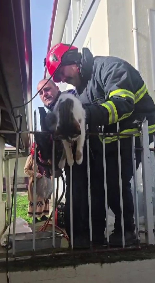 Edinilen bilgilere göre, Mehmet Akif Ersoy Mahallesi Hasan Kefeli Caddesi’nde bir binanın duvarındaki korkuluklara saplanmış haldeki kediyi gören vatandaşlar itfaiyeyi aradı. Barınaktan gelen personelin iğneyle uyuşturduğu kedi, itfaiyeciler tarafından korkuluğun kesilmesiyle kurtarıldı.