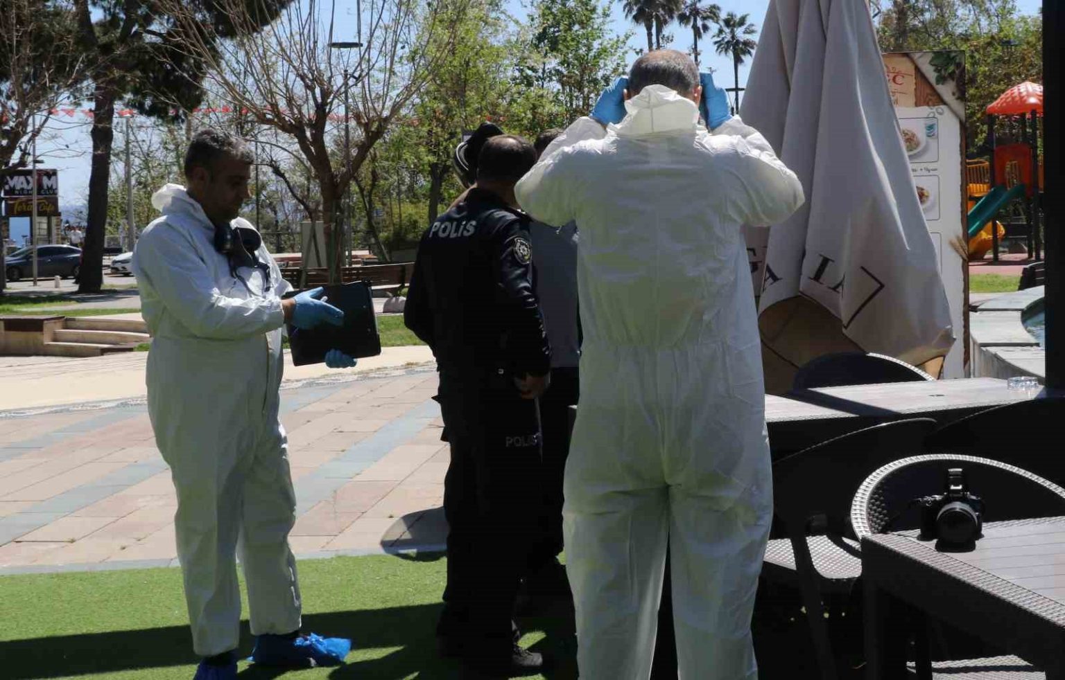 Olay, saat 13.00 sıralarında Muratpaşa ilçesi Cumhuriyet Caddesi Serdengeçti parkı içerisinde meydana geldi. Edinilen bilgiye göre, park içerisinde bulunan kafeterya çalışanları bir süredir gelen ağır ve kötü kokunun kaynağını tüm çabalarına rağmen bir türlü bulamadı. Park içerisinde bulunan LED reklam panosunun içerisinde bir hayvanın ölmüş olabileceğini, kokunun da bundan kaynaklandığını düşünen kafeterya çalışanları, durumu belediye görevlilerine bildirdi. Çalışanların durumu bildirmesi üzerine parka gelen belediye görevlileri reklam panosunun kontrol panelinin bulunduğu ahşap ile kaplı ayağını açtıklarında karşılaştıkları manzara ile hayrete düştü. Yaklaşık bir ay önce hayatını kaybettiği ve bir erkeğe ait olduğu değerlendirilen çürümüş haldeki cesetle karşılaşan belediye görevlileri durumu 112 Acil Çağrı Merkezi’ne bildirdi.