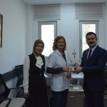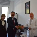 Kaymakamı Mert Kumcu, ilk olarak ’14 Mart Tıp Bayramı’ dolayısıyla; Köyceğiz Devlet Hastanesini ziyaret ederek, sağlık çalışanlarının Tıp Bayramını kutladı. Kaymakam Kumcu, sağlık çalışanlarının ismine özel yaptırılan bardakları hediye ederek hizmetlerinden dolayı teşekkür etti. Kaymakam Kumcu, sağlık çalışanları ile bir süre sohbet etti ve hastanede yapılan çalışmalar hakkında bilgi aldı. Köyceğiz Kaymakamı Mert Kumcu, hastane ziyaretinden sonra ’14 Mart Tıp Bayramı’ dolayısıyla; Köyceğiz İlçe Sağlık Müdürlüğü, 112 Acil Sağlık Hizmetleri İstasyonu, 1 Nolu Aile Sağlık Merkezi ve 2 Nolu Toparlar Aile Sağlığı Merkezini de ziyaret ederek hediyelerini takdim edip günlerini kutladı. Sağlık çalışanları da Kaymakam Mert Kumcu’nun ziyaretinden dolayı memnuniyetlerini belirterek teşekkür etti.