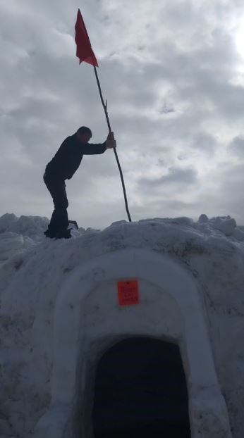 Sivas’ta bir köyde yaşayan vatandaşlar, yoğun kar yağışını fırsata çevirerek kardan çay ocağı yaptı. Kardan yapılan çay ocağının üzerine Türk bayrağı asılarak birlik ve beraberlik mesajı verildi.