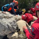Antayla’nın Serik ilçesinde küçükbaş otlatmak için evinden çıkan ve geri dönmeyen yaşlı kadın yakınlarının ihbarı üzerine bir gün sonra kayalıkları arasındaki yaklaşık 5 metrelik yarıkta jandarma dronuyla yapılan taramada sıkışmış halde bulundu.