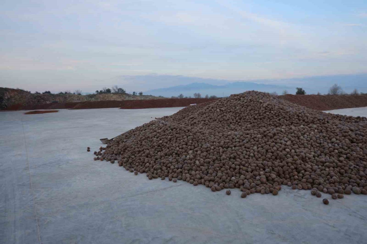 Türkiye’nin önemli ihracat ürünlerinden olan künarda (Çam fıstığı), kuraklık sebebiyle rekolte düşüklüğü yaşanırken, bin bir zorlukla toplanan kozalakların işlenmesi için fabrikalarda yoğun mesai süreci başladı.
